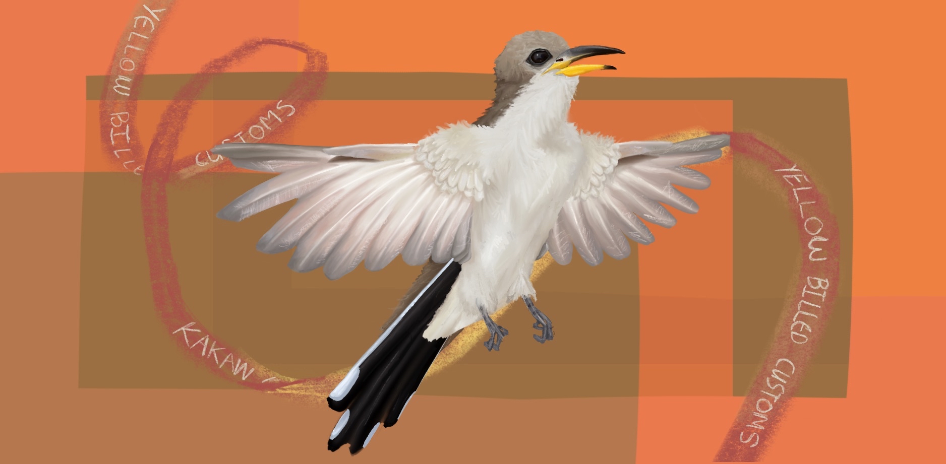 My online persona, Kakaw, derives from the yellow billed cuckoo bird's calling sound. It's a very hollow "ka-ka-ka-kow-kowlp-kowlp-kowlp" that the bird echoes off of loud sounds, such as thunder and rain storms. These beautiful birds are found all across North and South America, finding purchase within woodlands. While not endangered just yet, the species is declining more and more every year due to it's habitats being transformed into farmland and housing.